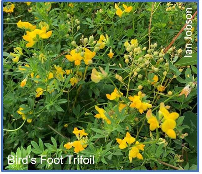 Plant : Bird’s Foot Trifoil is a native wildflower, which grows in meadows and pastures in rural Northumberland. It grows along the ground and uses grasses and other plants for support. It produces slender branched stems, up to 40 cm long and is a member of the fabaceae family. Many species of bees find it attractive.